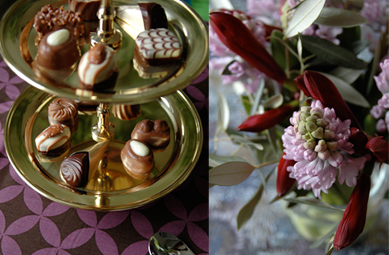 Etagere-- a small two-tiered etagere (in silver or gold) is a great way of presenting your after dinner sweets or chocolates